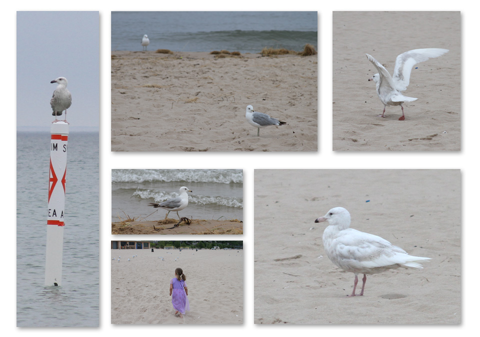 The beach is very popular and and get quite crowded in the summer, so it was nice to have so much room with a beautiful view of the Grand Haven Lighthouse. We spotted a number of different Gulls on the beach and our daughter decided to try to chase a few of them down. I had a hard time identifying one of them. The mostly white gull with the black tipped beak. It was quite a bit bigger than the Ring-billed Gull. Possibly a Glaucous Gull?