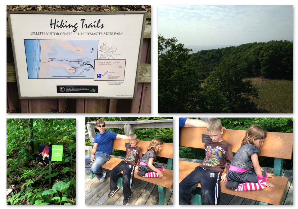 After the kid’s success fishing, we went back to the hotel for another hour in the pool and decided to head to P.J. Hoffmaster State Park in Muskegon. I had been to the park once as a child and have fond memories of earning a Junior Ranger badge with my younger sister. The weather turned out much nicer than predicted and by the time we arrived we were overdressed in long pants and long sleeves as the sun came out and the temperature hit close to 80.